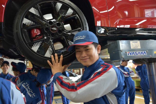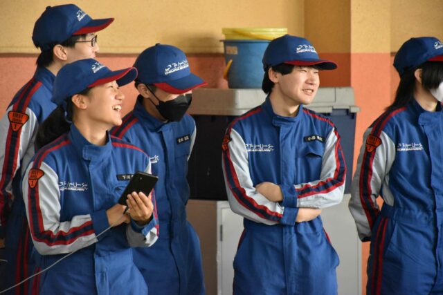 珍しい車に学生達も大興奮!