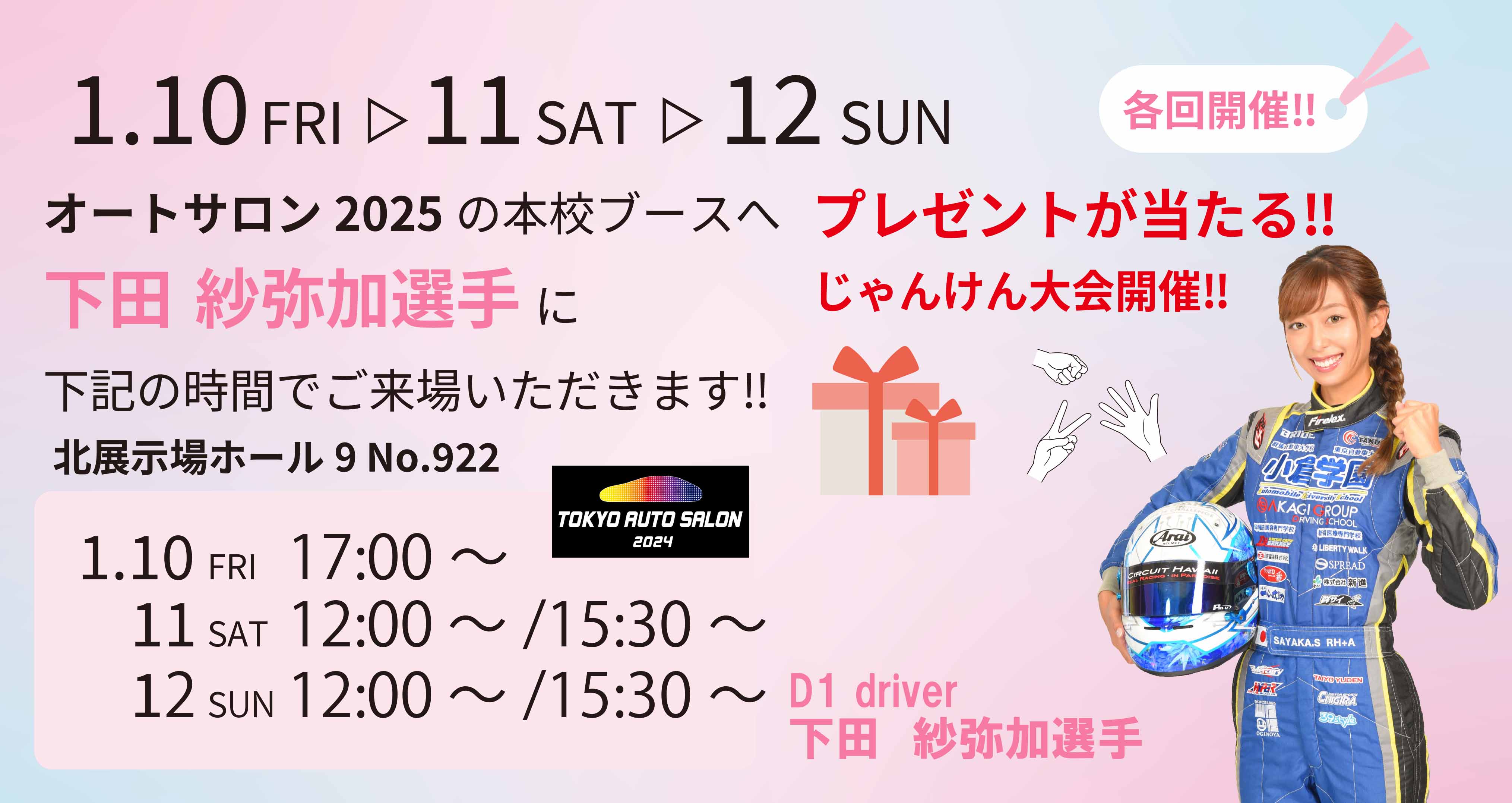 オートサロン2025の本校ブースへ D1 driver 下田 紗弥加選手にご来場いただきます!