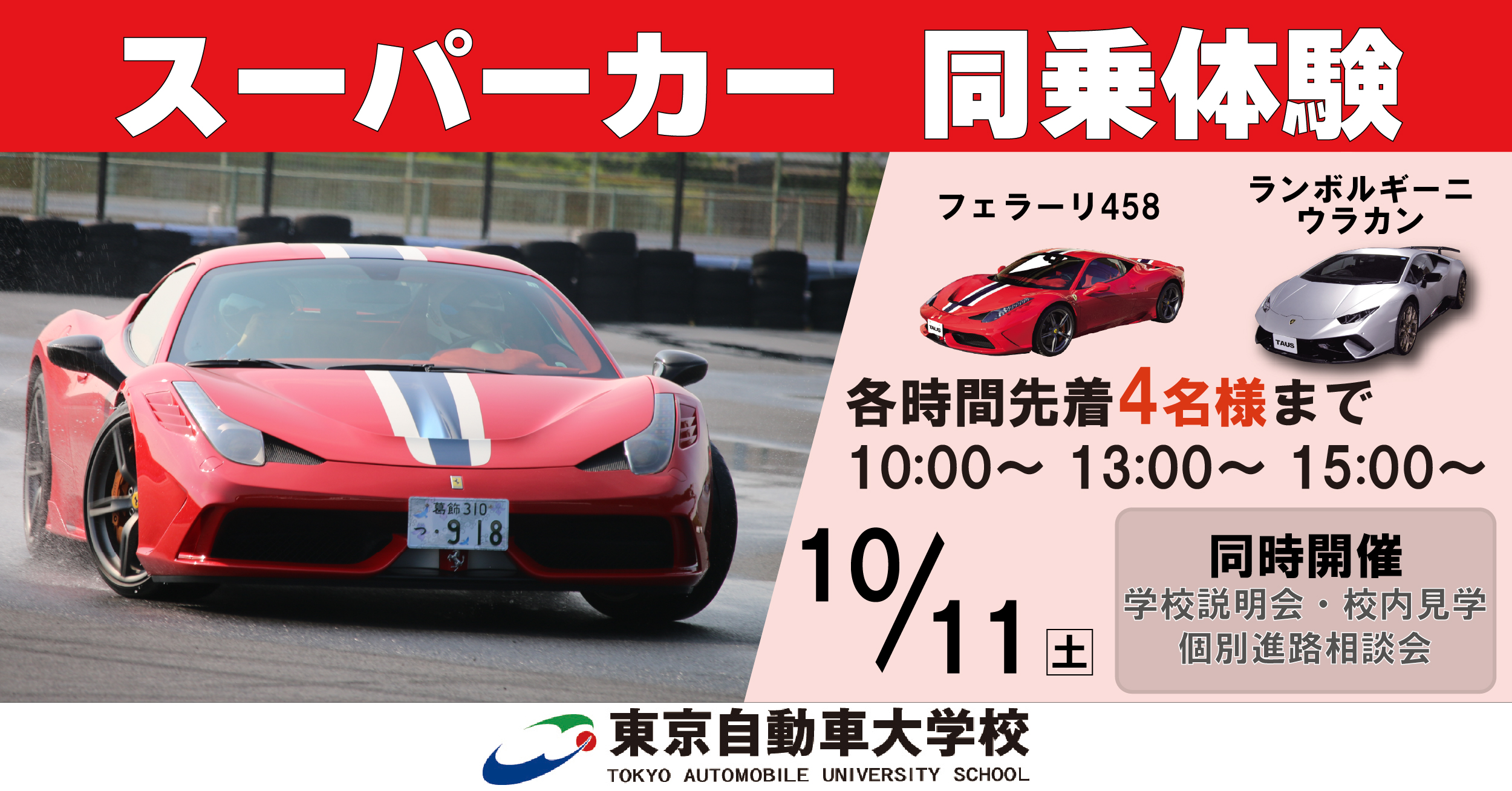 スーパーカー同乗体験+学校見学相談会 10月11日(土)